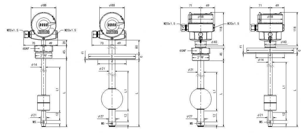 For other continuous level solutions, see the [Float-11P Coated Float Level Indicator] and the [Flap-11A Standard Magnetic Level Indicator]. The device also provides a standard [4โ20 mA output] for easier integration into monitoring and control systems.