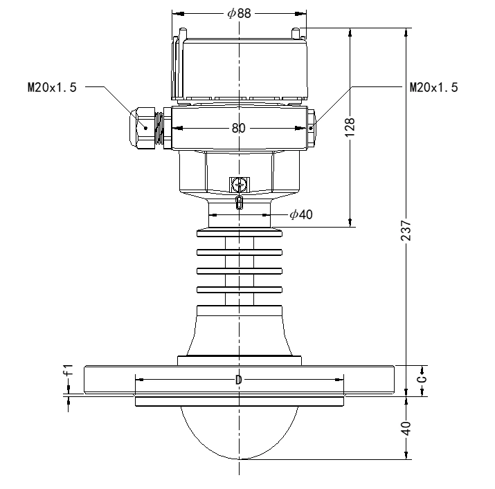 This model uses 80 GHz millimeter-wave FMCW radar technology and a 76 mm antenna lens. It supports a measuring range of up to 150 meters. Therefore, it is a strong choice for large storage tanks, silos, process vessels, and other industrial systems where long-distance level monitoring is important.