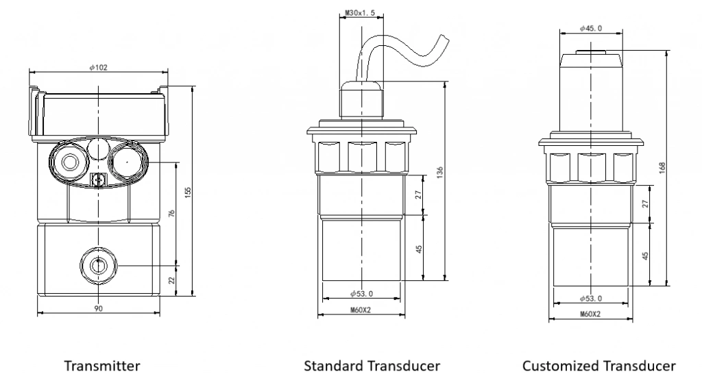 Uson-31 ultrasonic level transducer offers three selectable measuring ranges: 5 m, 10 m, and 15 m. It also includes temperature compensation, which helps improve measurement accuracy under changing ambient conditions. In addition, a special echo-processing algorithm helps reduce false echoes and improve signal stability in practical field applications.